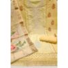 Yellow Thread Embroidered Cotton Silk Dress Material With Floral Motifs & Stone Work